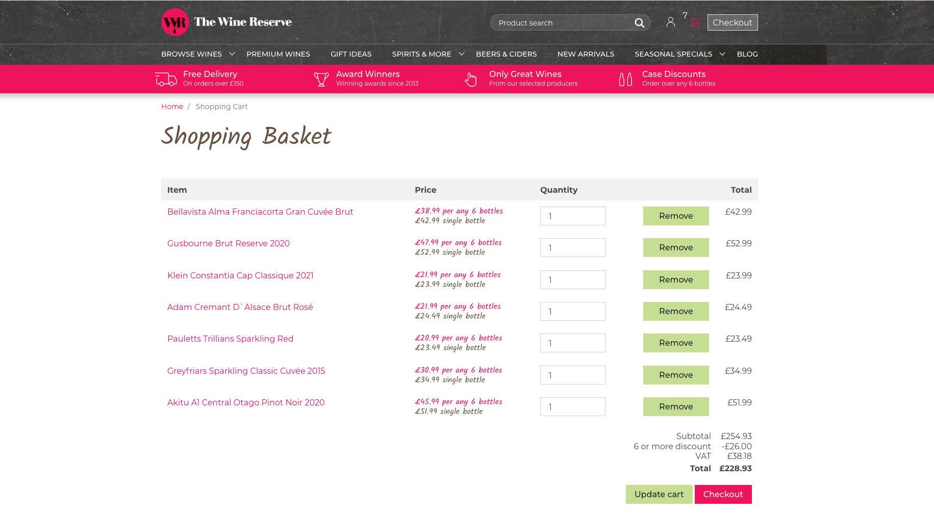 The Wine Reserve needed an ecommerce platform that could handle a structured wine catalogue that changed frequently, while supporting both individual bottle sales and mixed cases with automatic quantity discounts.